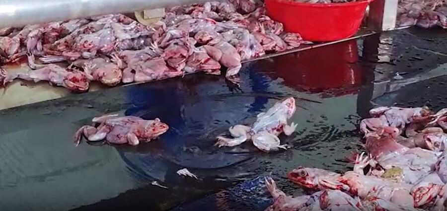 De nombreuses grenouilles sont toujours en vie et bougent lorsque les employés leur arrachent la peau. Les enquêteurs ont également noté que certaines grenouilles continuent d’ouvrir et de fermer la bouche après décapitation et que leur corps sans tête bouge encore quelques minutes plus tard.
