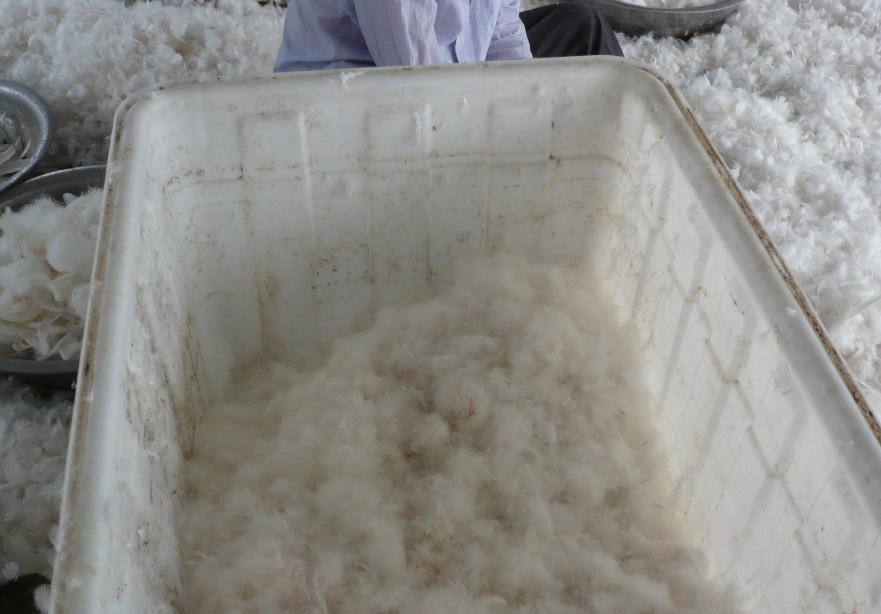 80 % du duvet et des plumes produits dans le monde et utilisés pour la fabrication d'articles comme des doudounes, des sacs de couchage et des articles de literie viennent de Chine.