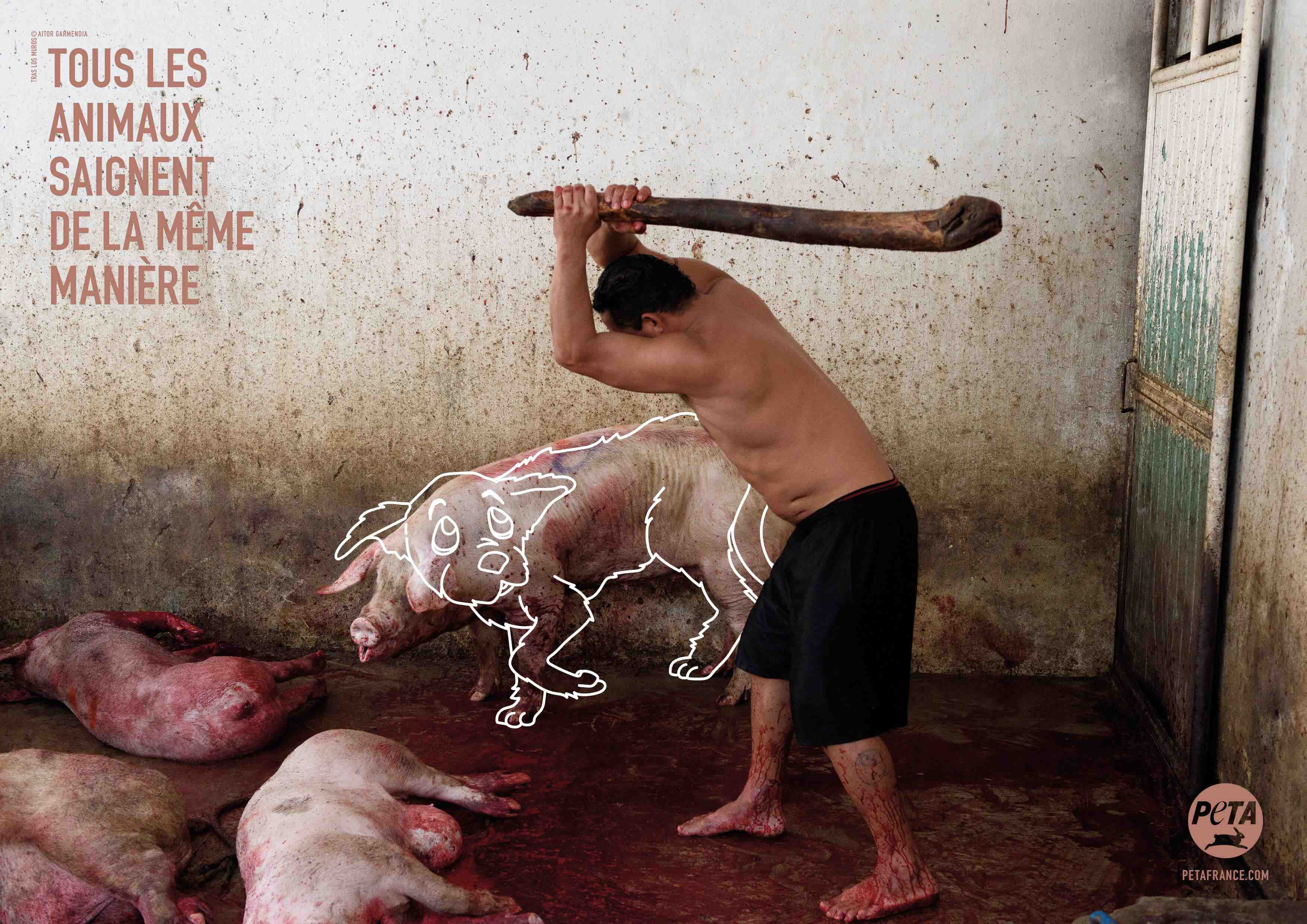 - La plupart des humains ne songeraient pas à garder leur chien dans un entrepôt exigu et bondé, sur une dalle de béton sale, ce qui est pourtant la façon dont les cochons sont traités dans l'industrie alimentaire, alors même que les cochons sont capables de ressentir la même douleur, joie, peur et détresse que les chiens.