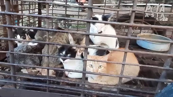 Des chats (aussi sensibles et intelligents que ceux avec lesquels nous partageons notre cœur et notre maison) terrifiés et épuisés étaient enfermés dans une cage surpeuplée et sale, sans nourriture ni eau, jusqu'à ce qu'ils soient achetés pour leur chair.