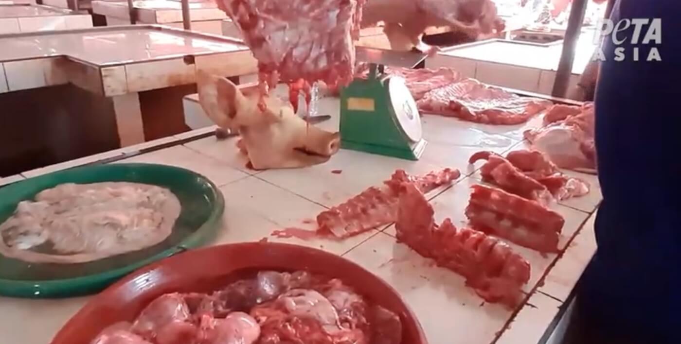 Au marché de Tomohon, en Indonésie, un enquêteur de PETA Asie a observé que la chair de sangliers, de serpents, de chiens et de rats (dont les bébés aiment mettre leurs bras autour du cou de leur mère lorsqu'ils prennent leur bain) était ouvertement vendue au marché. Des travailleurs et des clients sans gants ont été vus en train de manipuler les parties de corps d'animaux qui avaient été tués sur place. Un serpent mutilé était recroquevillé sur une table, le sang rougissant les carreaux blancs. Des poulets avec des blessures béantes étaient attachés à d'autres oiseaux attendant d'être abattus.