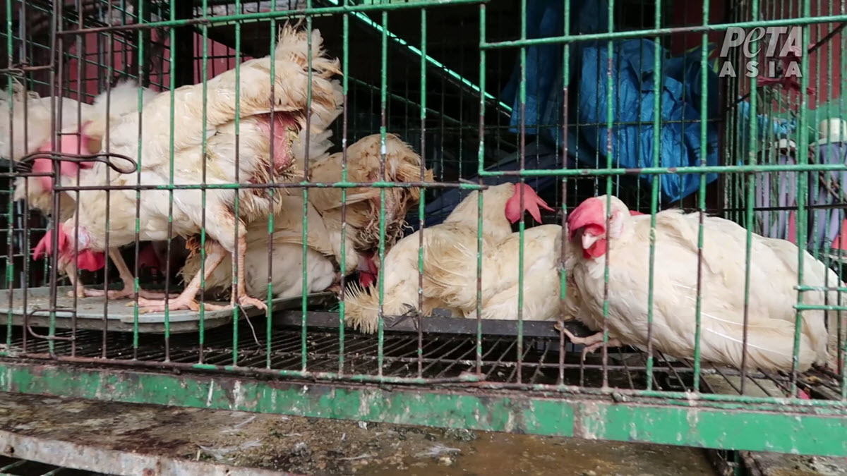 Après avoir diffusé des images de « marchés humides » (également appelés « marchés d'animaux vivants ») en Indonésie et en Thaïlande au début du mois d'avril – des mois après le début de l'épidémie de COVID-19 – les enquêteurs de PETA Asie ont observé davantage de crasse, de misère et de mort dans près d'une douzaine d'autres marchés d'animaux ailleurs en Asie. Malgré le nombre croissant de morts, l'appel des dirigeants mondiaux en faveur d'une interdiction de ces marchés et l'importance de continuer à aplanir la courbe, ces marchés et d'autres comme ceux-ci continuent à fonctionner comme si de rien n'était.