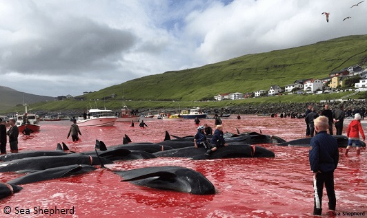 Jusqu'à un millier de ces animaux sont rabattus dans une baie par des bateaux, des crochets métalliques sont enfoncés dans leur évent, et des cordes sont utilisées pour les traîner vivants jusqu'à proximité du rivage, où leur moelle épinière est tranchée à l'aide d'une pique ou d'un couteau. Ils se vident lentement de leur sang. Des familles entières sont abattues, et certains animaux sont laissés à nager dans le sang des membres de leur famille pendant des heures avant d'être massacrés. Les baleines et les dauphins sont des êtres très intelligents, qui ressentent la douleur et la peur tout autant que nous. Les groupes de globicéphales communiquent même dans leurs propres dialectes qui distinguent leurs membres des étrangers.